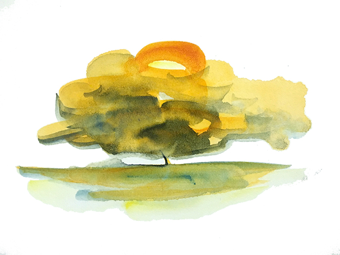 Tree Study No. 14, Washes of Azo and Ultramarine (1-Minute)
