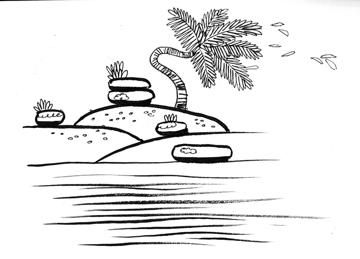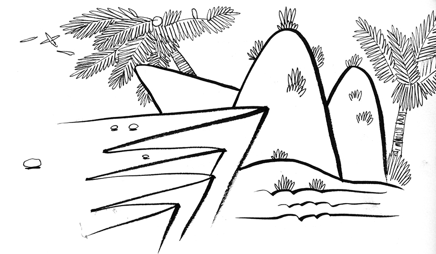Ink Study No. 04, Rock and Plant Compositions with Palms (1 Minute)