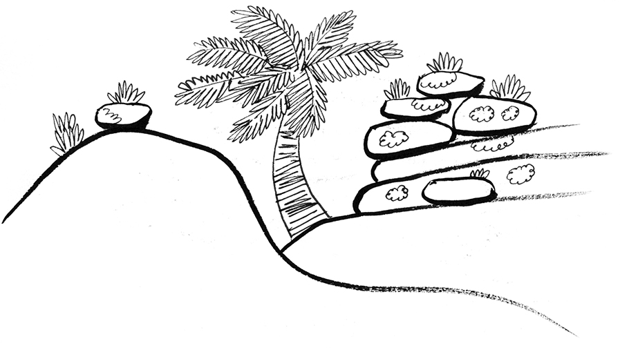 Ink Study No. 03, Rock and Plant Composition with Palms (1 Minute)