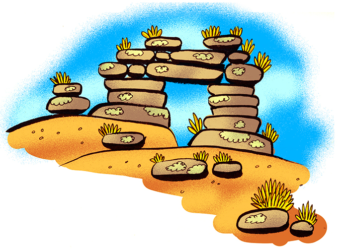 Ink Study No. 08, Rock and Plant Composition with Palms (1 Minute)