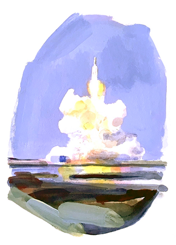 Gouache on Paper, Topical Illustration Study, Falcon Heavy